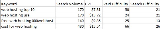 Instead of trying to focus on the highly competitive web hosting keyword phrase, there are so many other less competitive yet decent search volume keyword terms that can be targeted instead.